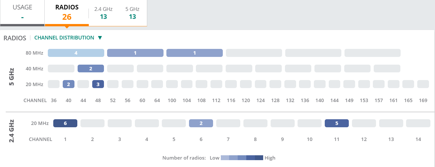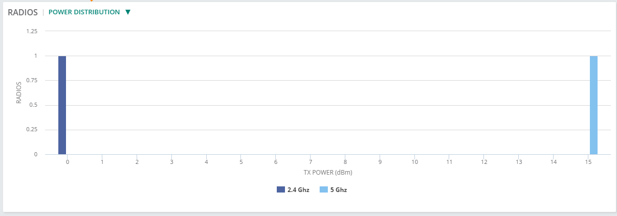 section displays the channel distribution and power distribution graphs for the radios.Channel Distribution