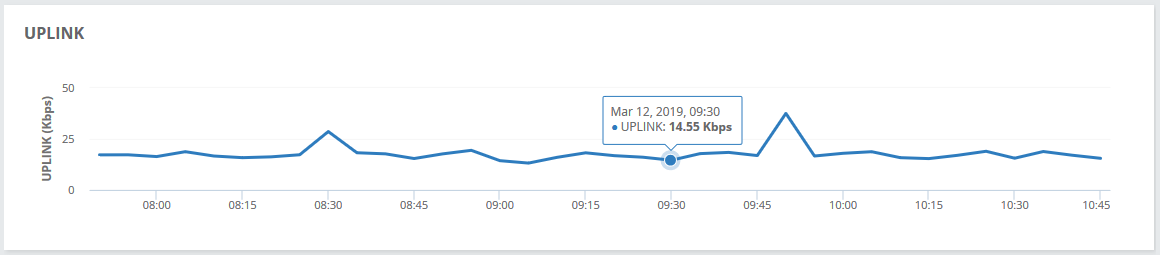 section displays the uplink rate (bps) trend chart for the duration specified in the time range filter. Hover the mouse over the trend chart to view the uplink rate at a particular time.Figure 5 Uplink Trend Chart
