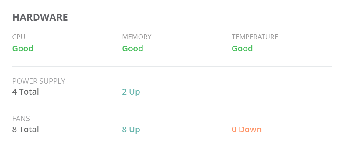 section displays the following details:- —Total number of power supplies and number of power supplies in Up state.