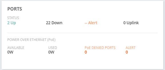 section displays the following details:- —Number of ports in Up and Down state, and number of alerts.