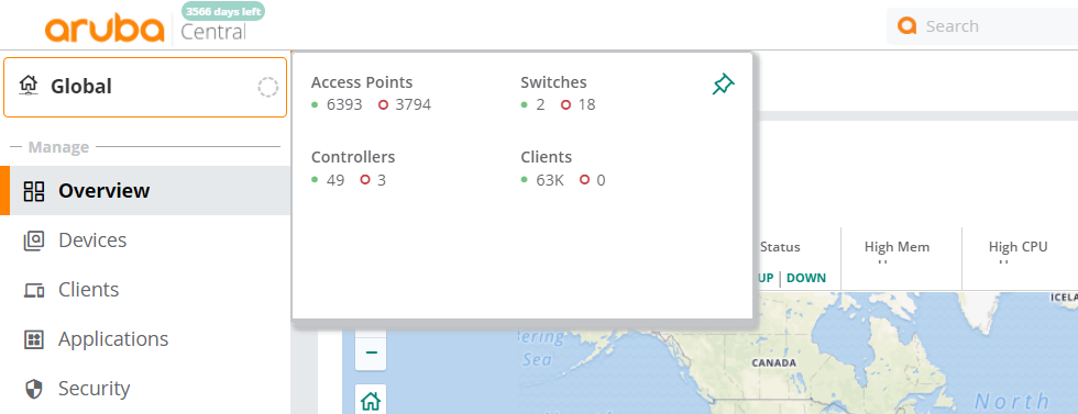 Figure 1 Expanded but Unpinned Health Bar in the Global Dashboard