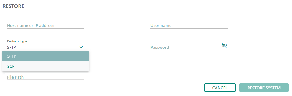 - — Specify the file path or folder name in the server from which you want to restore the saved data.